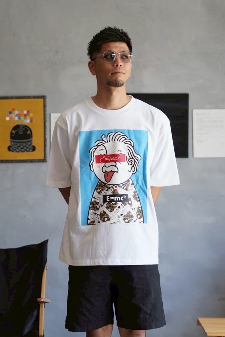 メインビジュアルのアインシュタインがトランプ柄のシャツを着ているデザイン。